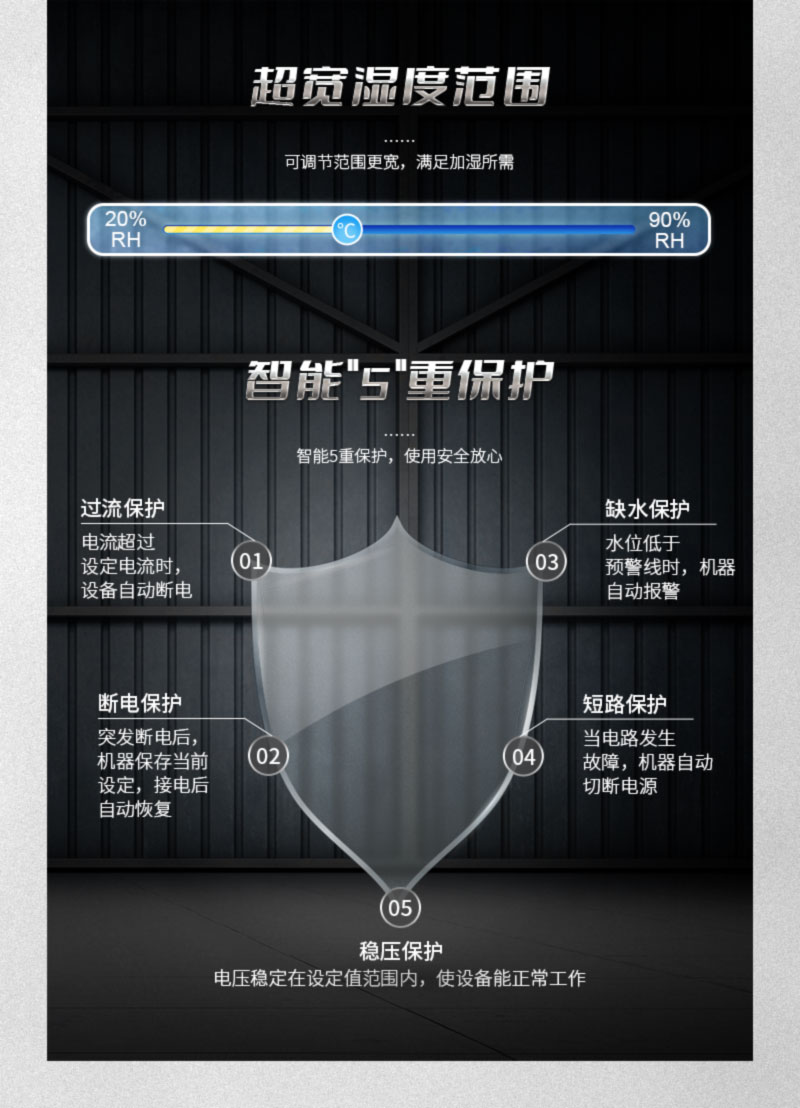 ·操作簡單,缺水自動報(bào)警·特有濕度與故障顯示功能